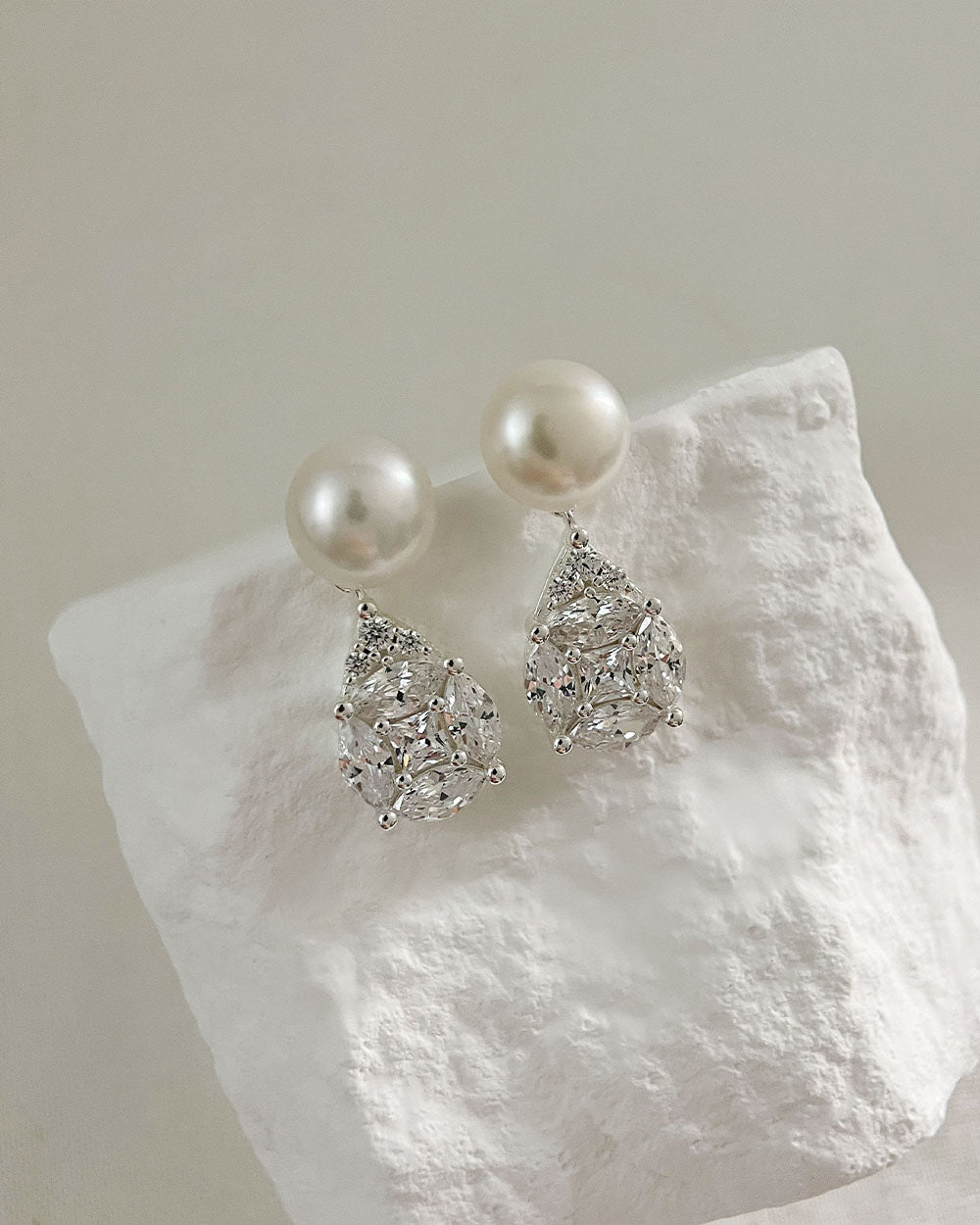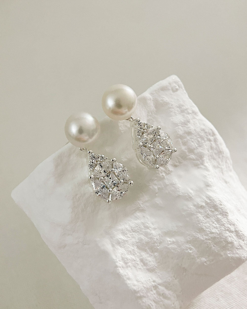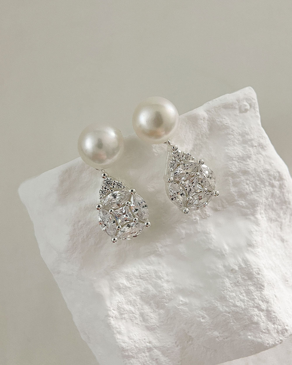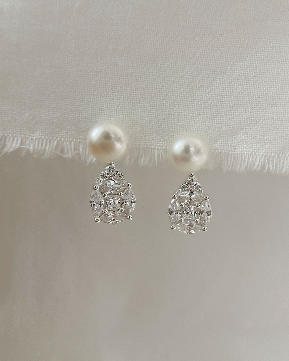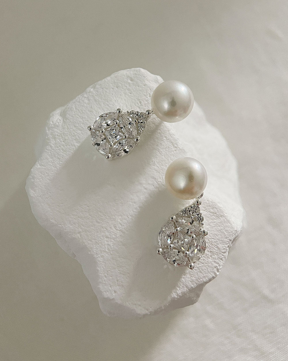 Elegant and timeless, these earrings feature an 8.5mm lustrous freshwater pearl paired with a brilliant teardrop-shaped cubic zirconia drop. The contrast between the smooth pearl and the sparkling crystal creates a refined, romantic balance — perfect for brides, evening occasions, or any moment that calls for understated luxury.