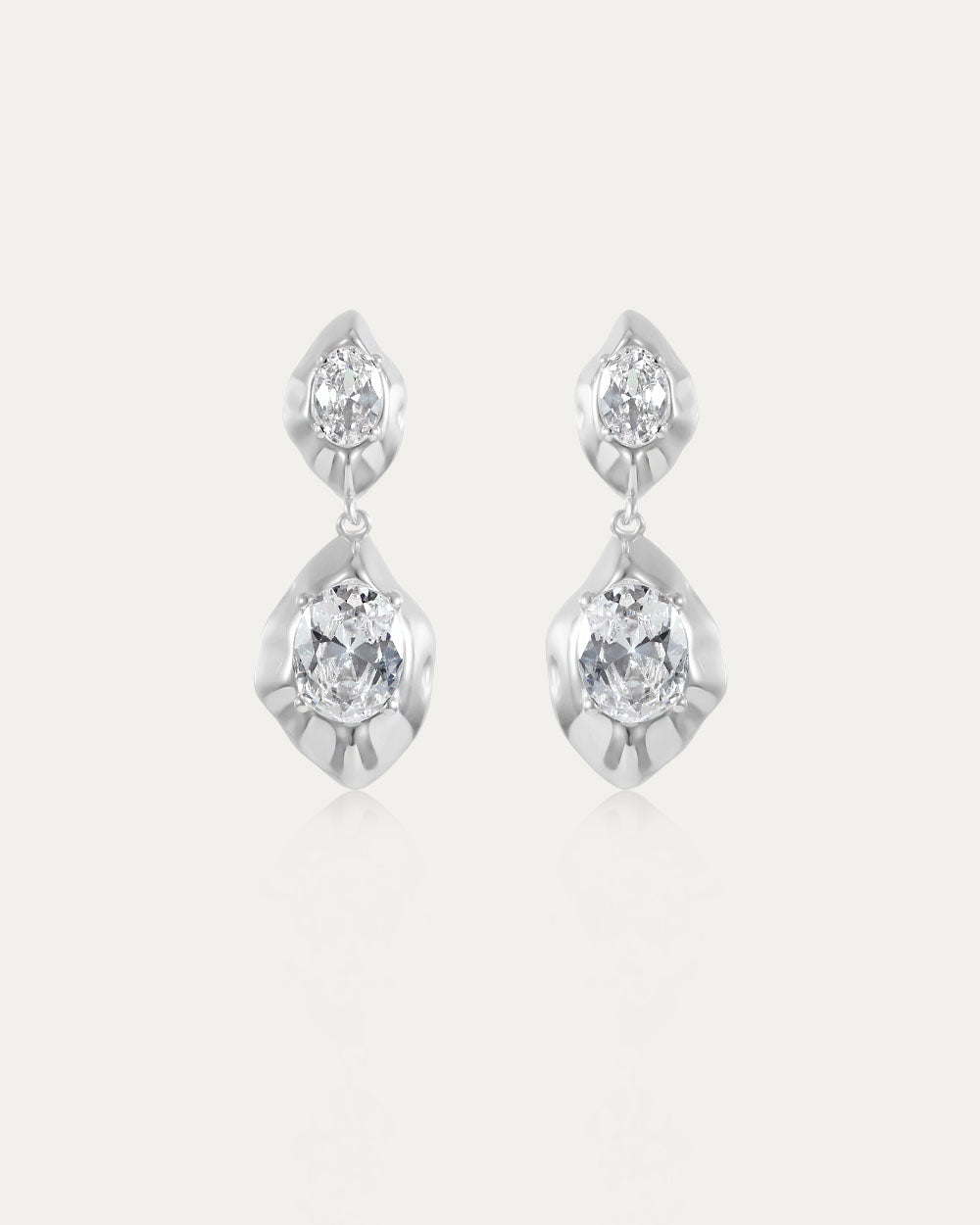 Draped in fluid artistry, the Molten Icon Earrings redefine elegance with their organic, molten-metal aesthetic. Crafted from high-quality brass with a luminous silver-tone finish, each earring showcases three radiant cubic zirconia stones, sparkling like frozen light captured in motion.
