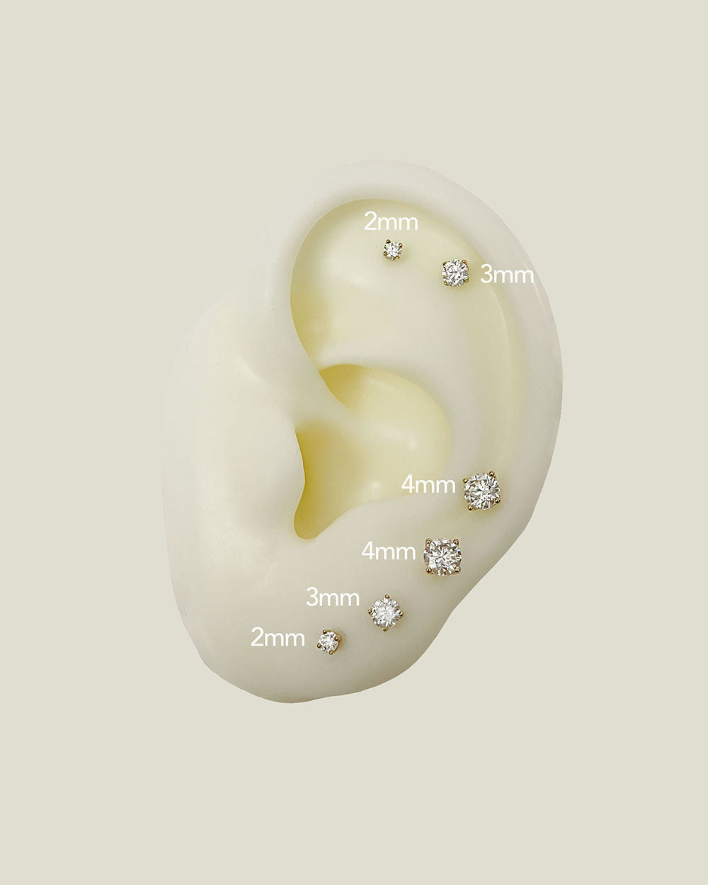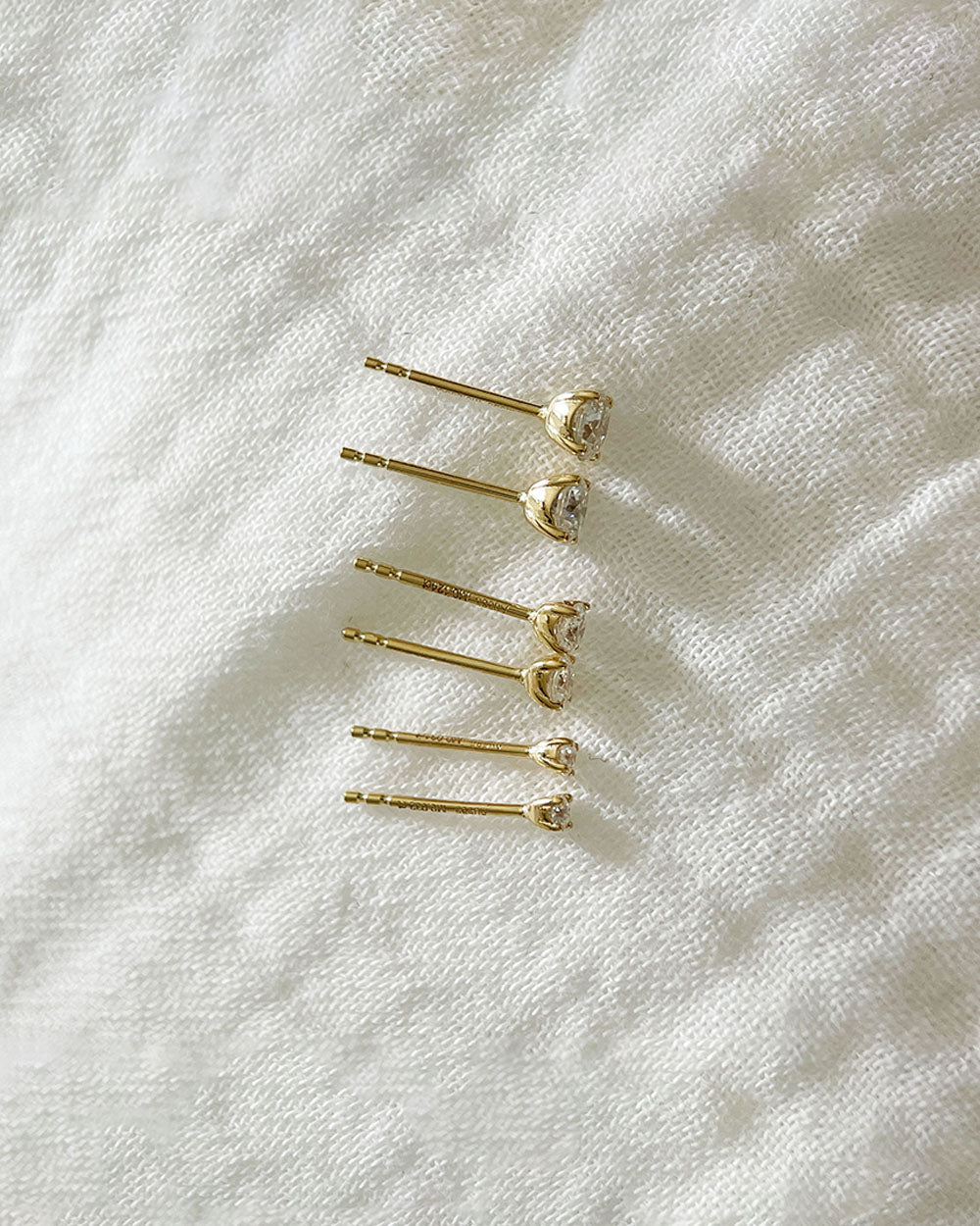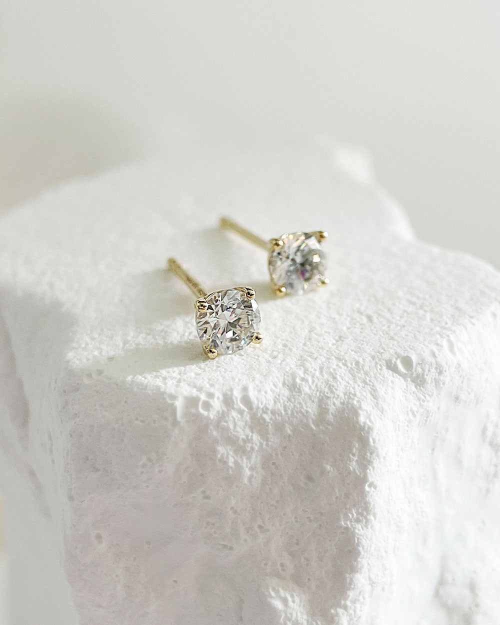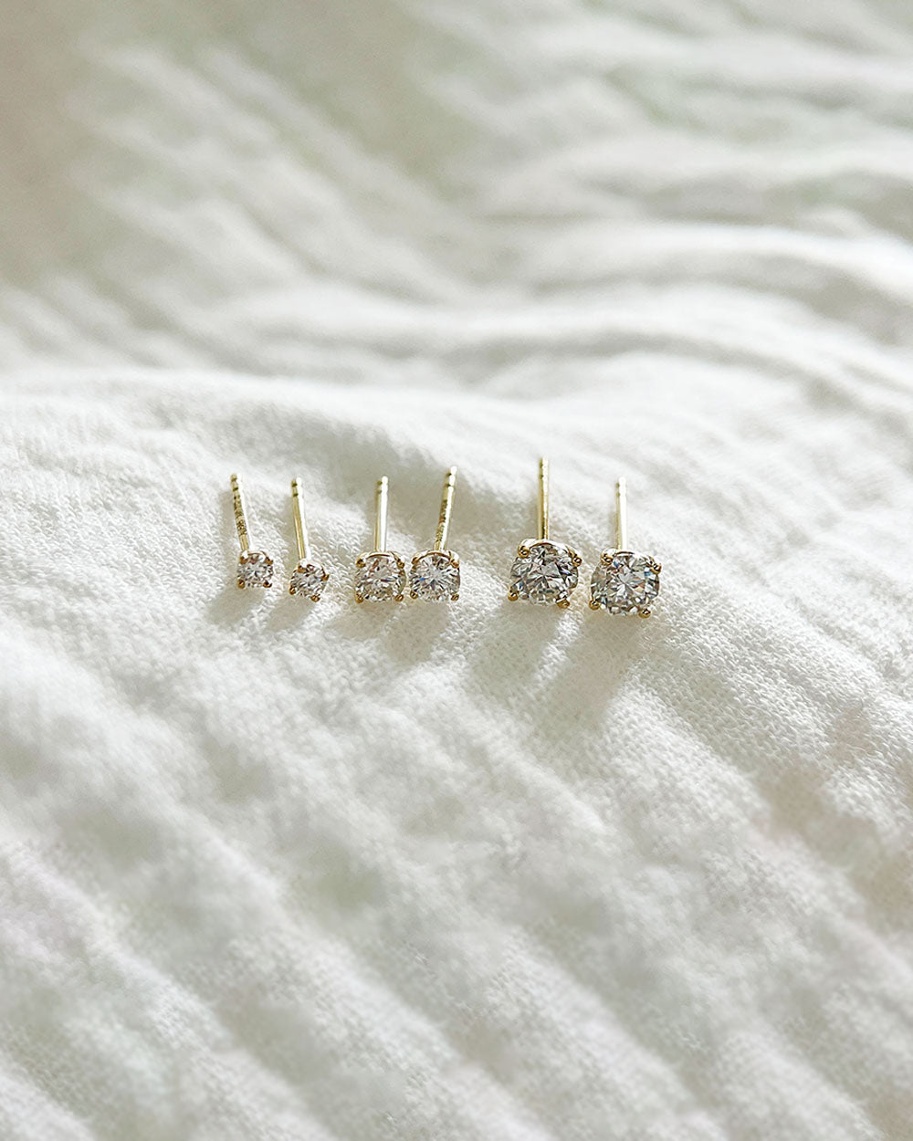 Each stud is laser-engraved with Au585 to certify genuine 14K gold, and MO + carat mark to verify the moissanite stone.